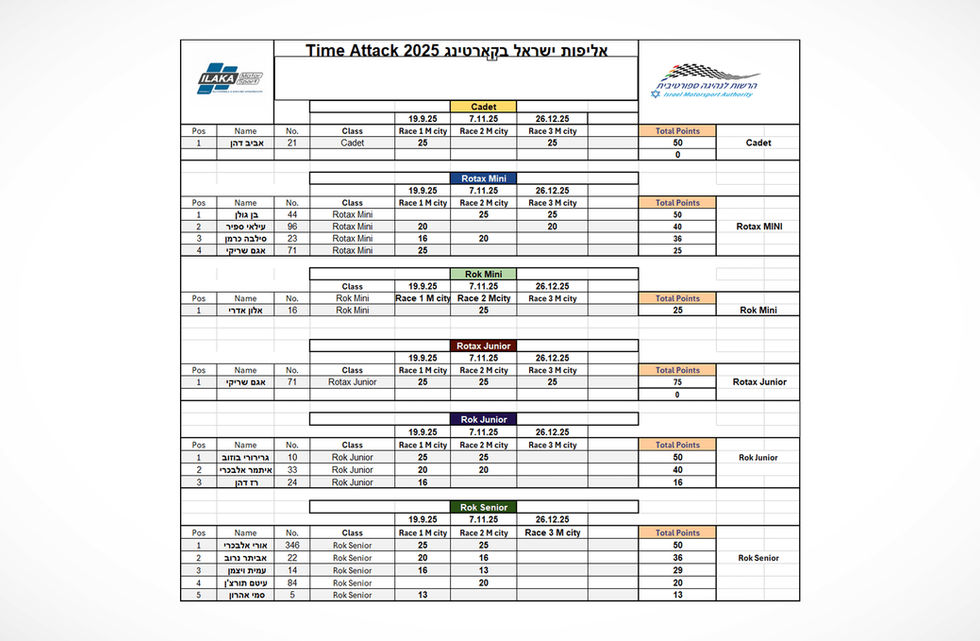 אליפות ישראל בקארטינג זמן מטרה 2025